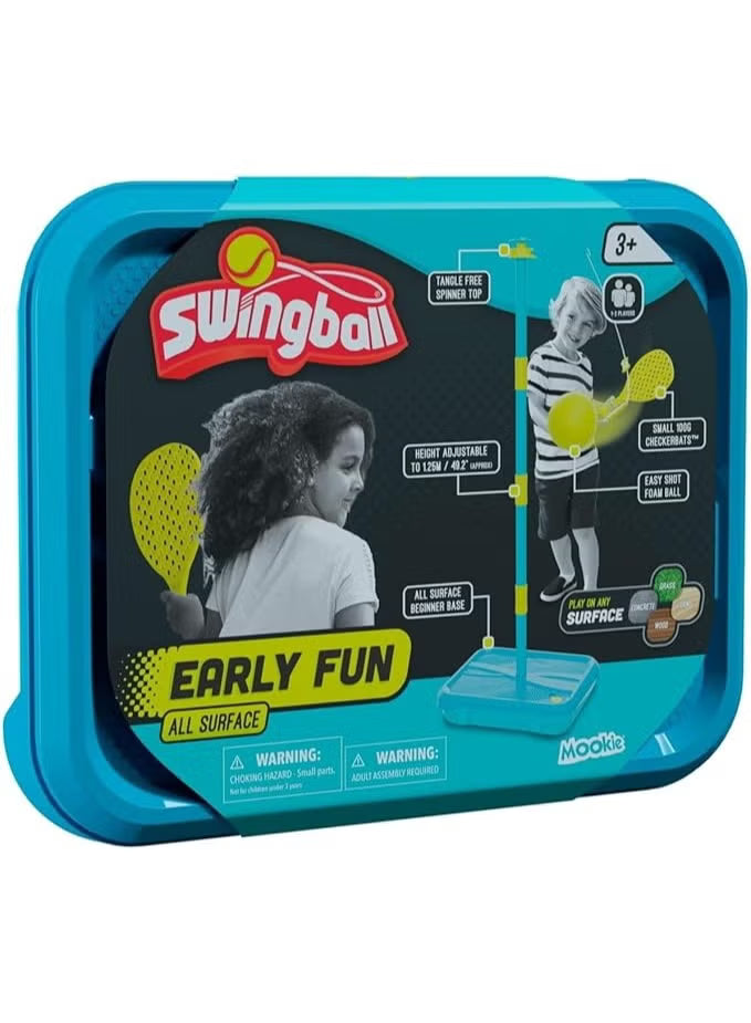 The Mookie Swingball Early Fun All Surface 7295 is specially designed for toddlers and young children who are new to racket games. With a shorter 1.25m pole, soft rubber tennis ball, and lightweight checker bats, this beginner set encourages safe and active outdoor play. The all-surface base allows easy setup anywhere — at home, in the garden, or even on balconies. A perfect choice for GCC families seeking durable, child-friendly outdoor toys.