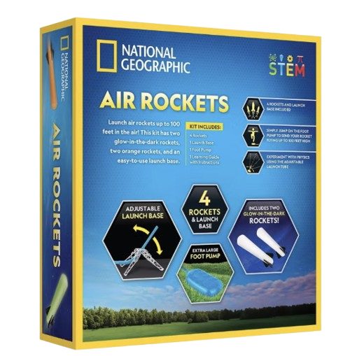 Items Included: 2 glow-in-the-dark rockets, 2 orange rockets, stomp pump, adjustable launcher