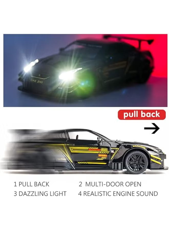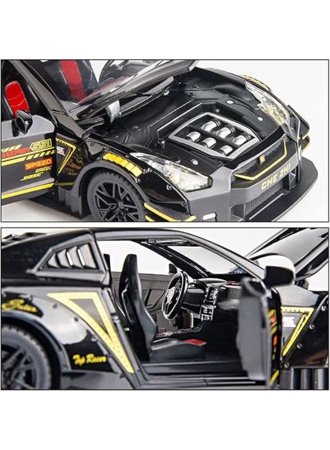 The Pullback Diecast Nissan GTR35 (CZ128AD) is a premium 1:24 scale model combining exciting play features with collector-grade detailing. Crafted from durable zinc alloy with realistic interiors, opening parts, and interactive lights and sound, it offers engaging play for children and an impressive display piece for car enthusiasts. A perfect choice for GCC families seeking quality, realism, and lasting value.