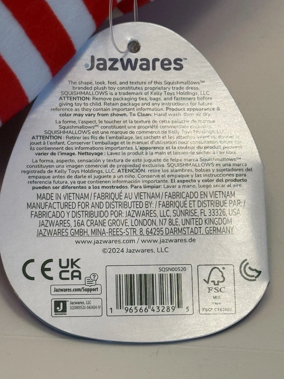 Made In: China (typical for Squishmallows)