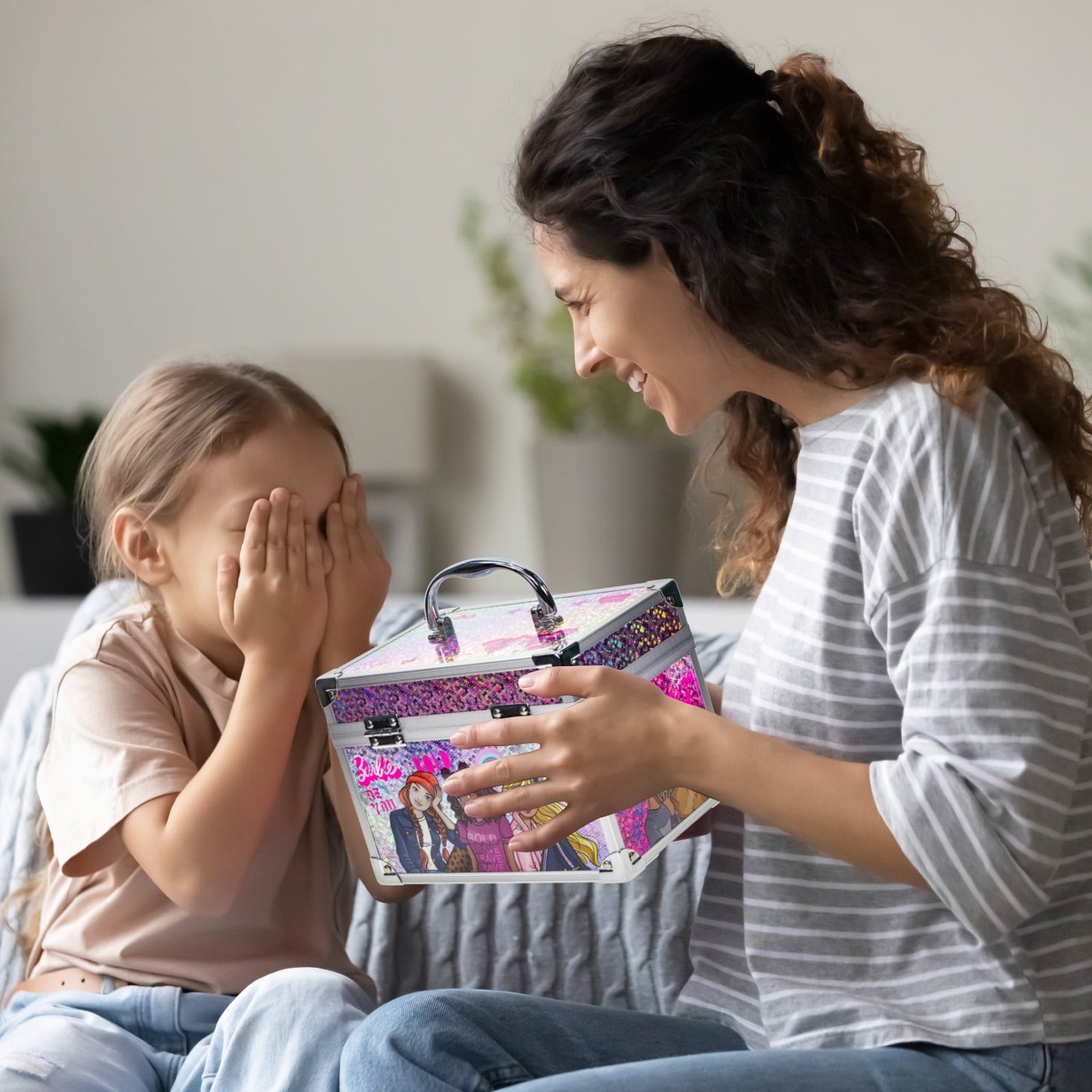Portable Train Case: Comes in a Barbie-themed train case for easy storage and transport.