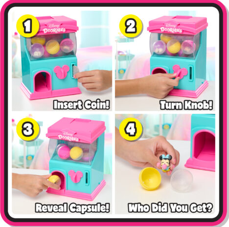 Interactive Surprise Play: Turn the knob to reveal squishy Disney figures in a fun vending-style play experience.