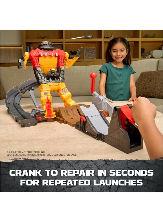 The Monster Jam Smash & Bash Smashbot Playset delivers high-impact action as kids launch their trucks into an explosive showdown against a towering 15-inch SmashBot. With a high-flying launcher, adjustable ramps, and a repair bay to reset the battle instantly, this set keeps the excitement going round after round. It also includes an exclusive JCB Digatron monster truck, making it a must-have for Monster Jam fans and young stunt lovers across the GCC.