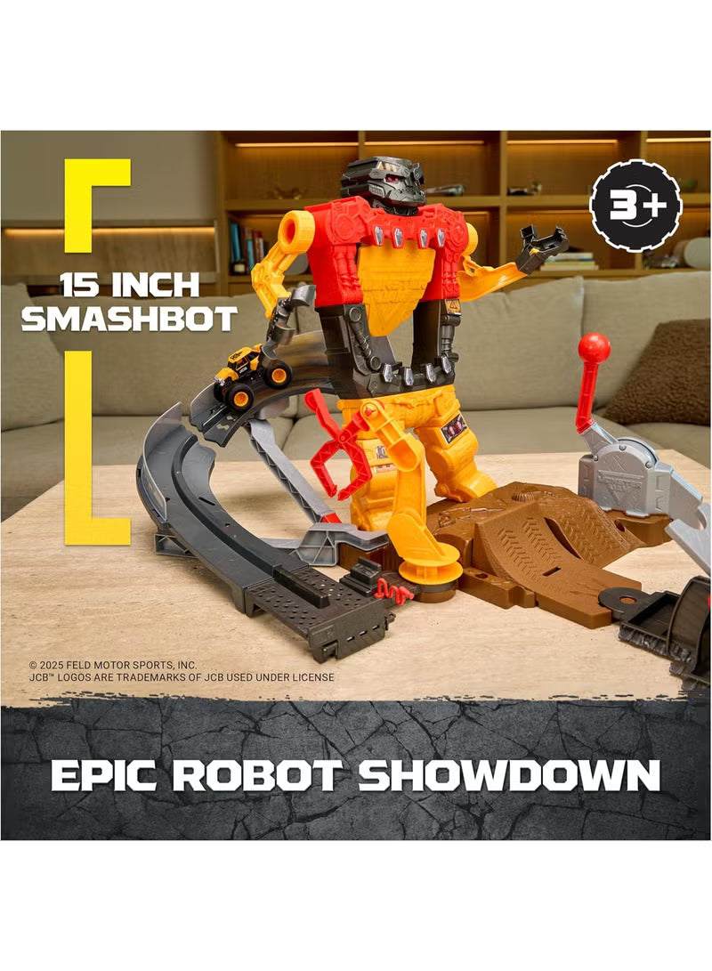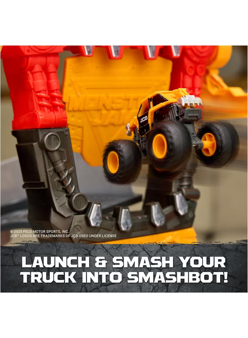 Epic Robot Battle: Blast your Monster Jam truck at the massive 15-inch SmashBot for dramatic takedowns.