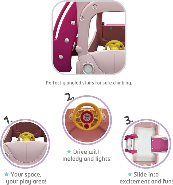 Safe Angled Stairs: Specially designed steps allow kids to climb confidently and safely.